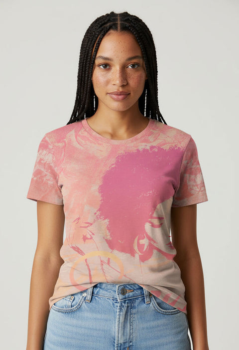 Upgrade your everyday rotation with the Sania Marie Throwback Tee—a reimagined classic redesigned with modern attitude and effortless streetwear energy. Crafted from a premium knit mid-weight jersey, this top delivers a smooth, cotton-touch feel and a relaxed regular fit that moves with you. The soft gradient artwork and vintage-inspired illustration create a warm, expressive vibe that stands out without trying too hard. Perfect with jeans, layered under a jacket, or worn solo for a laid-back statement look.